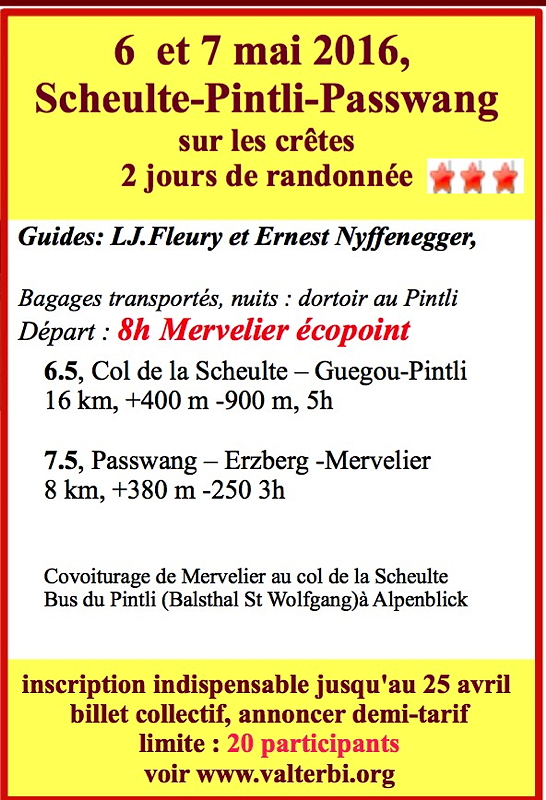 Cette course part du Col de la Scheulte, fait étape à Balsthal / Pintli, puis du Passwang vous ramène à la Scheulte et à Mervelier.